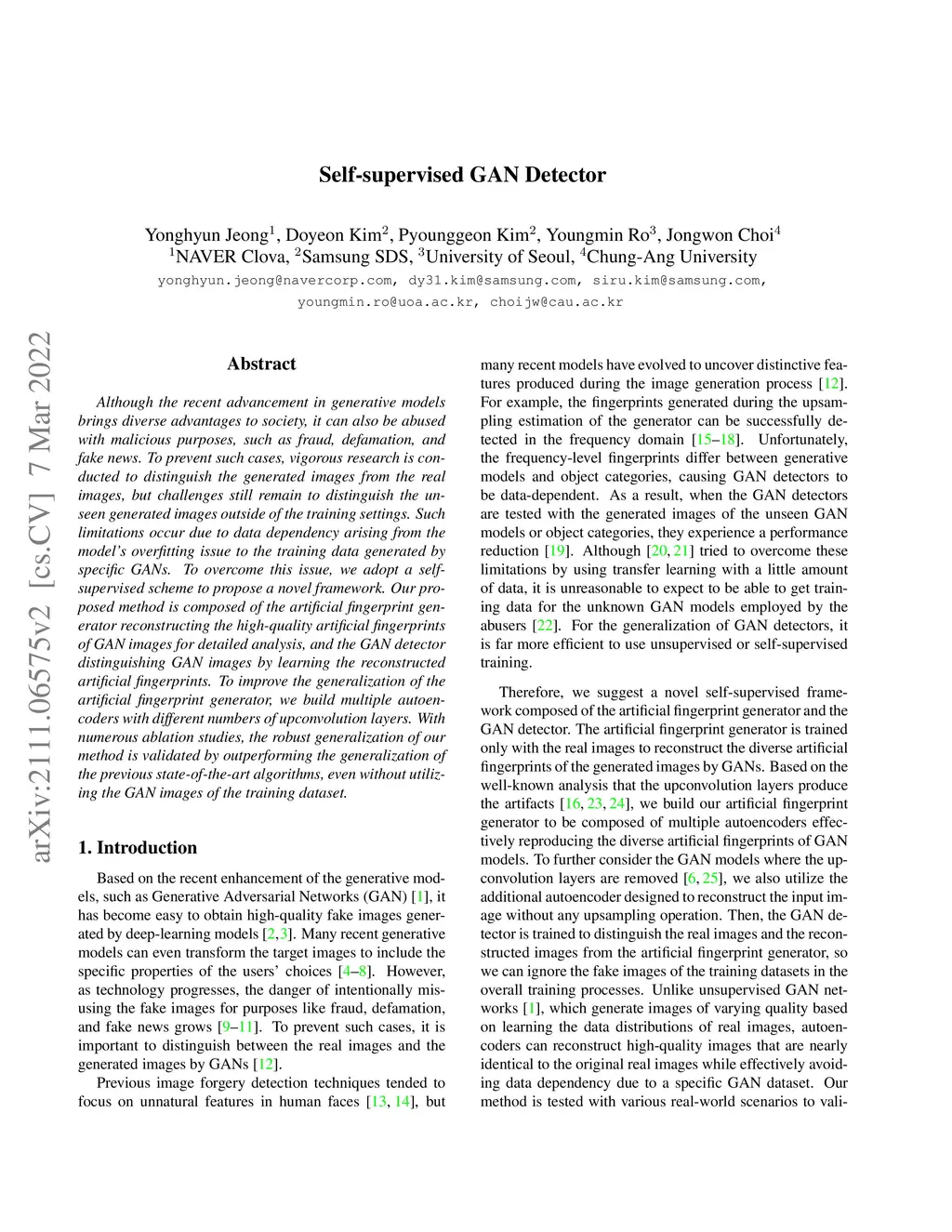 Although the recent advancement in generative models brings diverse advantages to society, it can also be abused with malicious purposes, such as fraud, defamation, and fake news. To prevent such cases, vigorous research is conducted to distinguish the generated images from the real images, but challenges still remain to distinguish the unseen generated images outside of the training settings. Such limitations occur due to data dependency arising from the model's overfitting issue to the training data generated by specific GANs. To overcome this issue, we adopt a self-supervised scheme to propose a novel framework. Our proposed method is composed of the artificial fingerprint generator reconstructing the high-quality artificial fingerprints of GAN images for detailed analysis, and the GAN detector distinguishing GAN images by learning the reconstructed artificial fingerprints. To improve the generalization of the artificial fingerprint generator, we build multiple autoencoders with different numbers of upconvolution layers. With numerous ablation studies, the robust generalization of our method is validated by outperforming the generalization of the previous state-of-the-art algorithms, even without utilizing the GAN images of the training dataset.