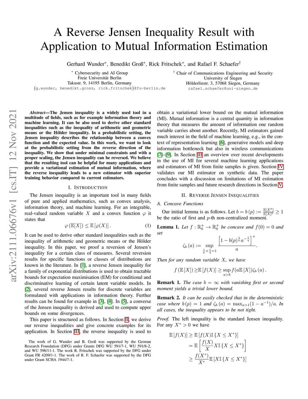 A Reverse Jensen Inequality Result with Application to Mutual