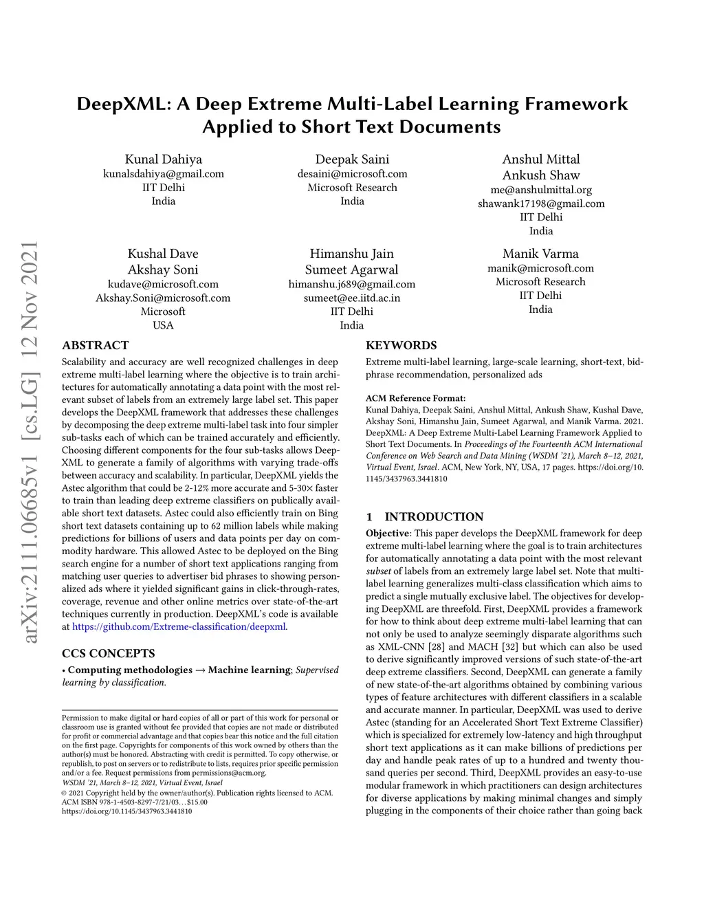DeepXML: A Deep Extreme Multi-Label Learning Framework Applied to Short