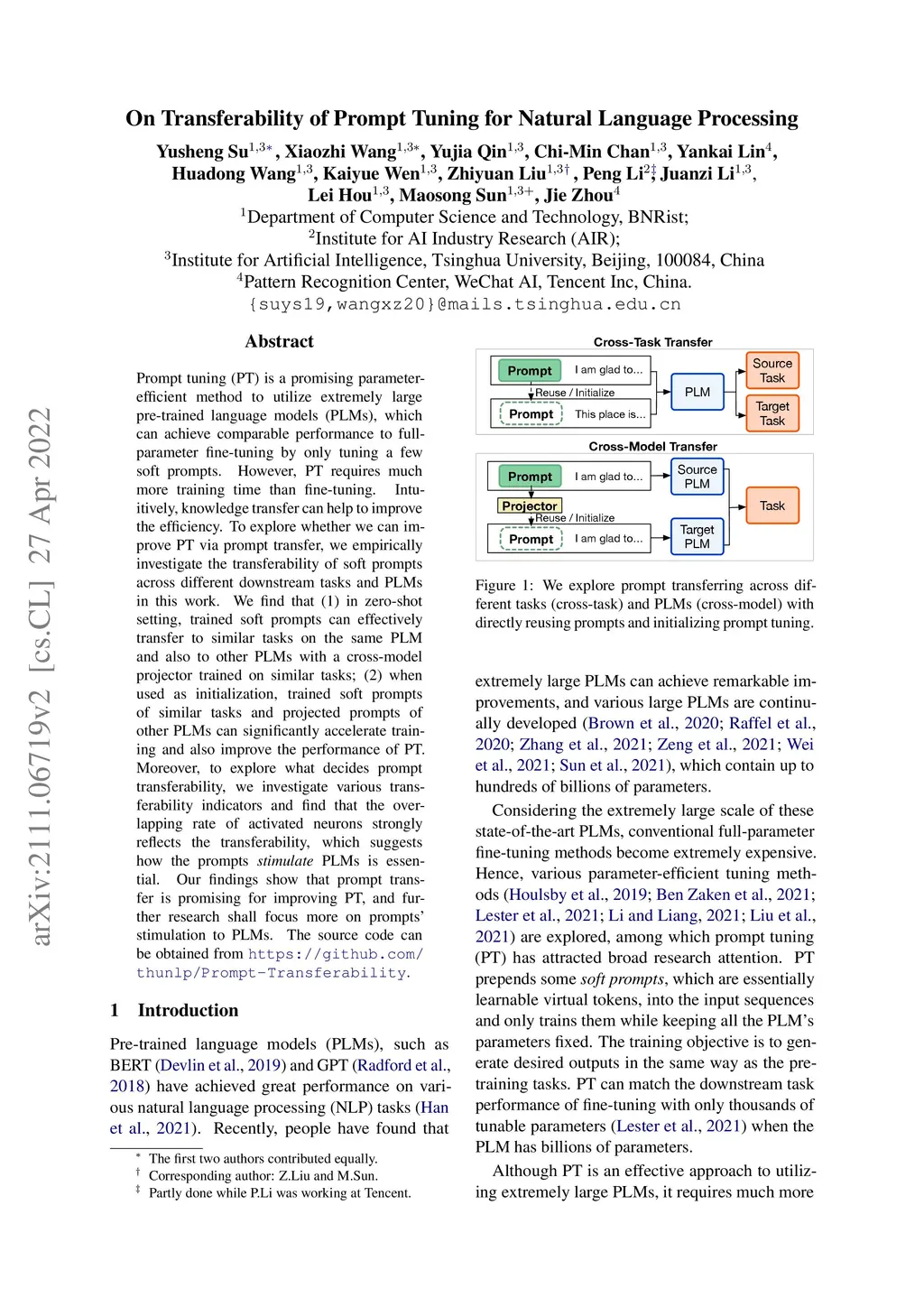 Prompt tuning (PT) is a promising parameter-efficient method to utilize extremely large pre-trained language models (PLMs), which can achieve comparable performance to full-parameter fine-tuning by only tuning a few soft prompts. However, PT requires much more training time than fine-tuning. Intuitively, knowledge transfer can help to improve the efficiency. To explore whether we can improve PT via prompt transfer, we empirically investigate the transferability of soft prompts across different downstream tasks and PLMs in this work. We find that (1) in zero-shot setting, trained soft prompts can effectively transfer to similar tasks on the same PLM and also to other PLMs with a cross-model projector trained on similar tasks; (2) when used as initialization, trained soft prompts of similar tasks and projected prompts of other PLMs can significantly accelerate training and also improve the performance of PT. Moreover, to explore what decides prompt transferability, we investigate various transferability indicators and find that the overlapping rate of activated neurons strongly reflects the transferability, which suggests how the prompts stimulate PLMs is essential. Our findings show that prompt transfer is promising for improving PT, and further research shall focus more on prompts' stimulation to PLMs. The source code can be obtained from https://github.com/thunlp/Prompt-Transferability.