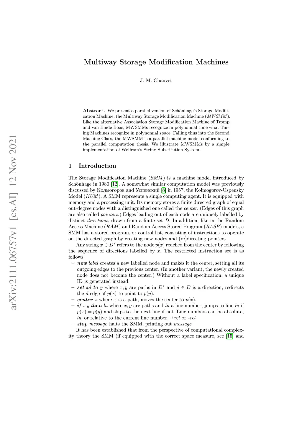We present a parallel version of Sch\"onhage's Storage Modification Machine, the Multiway Storage Modification Machine (MWSMM). Like the alternative Association Storage Modification Machine of Tromp and van Emde Boas, MWSMMs recognize in polynomial time what Turing Machines recognize in polynomial space. Falling thus into the Second Machine Class, the MWSMM is a parallel machine model conforming to the Parallel Computation Thesis. We illustrate MWSMMs by a simple implementation of Wolfram's String Substitution System.