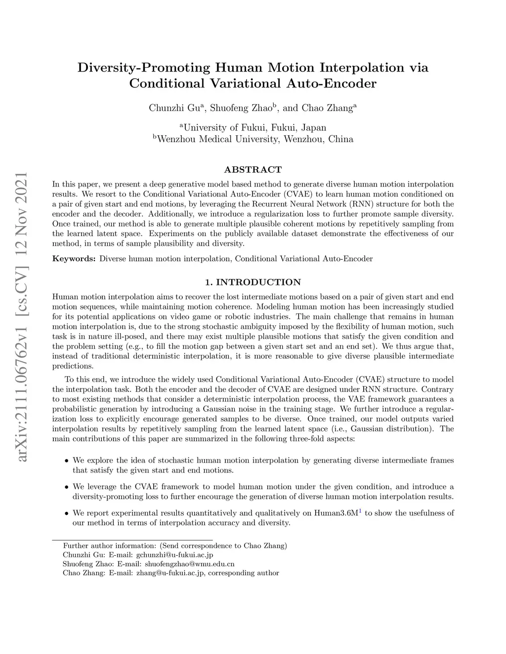 Diversity-Promoting Human Motion Interpolation via Conditional