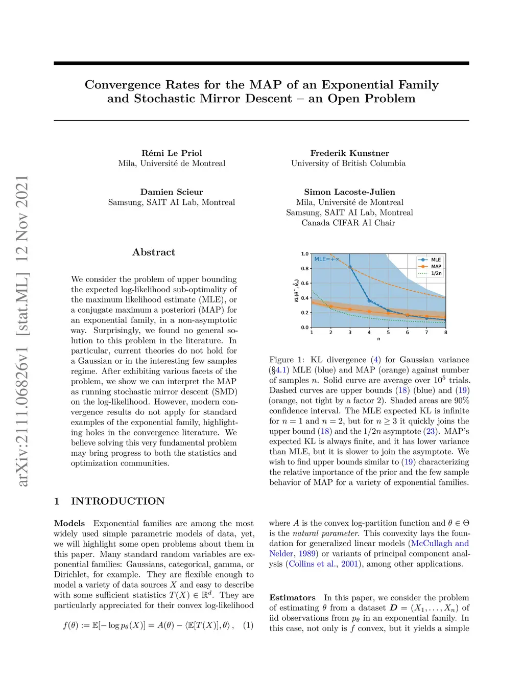 We consider the problem of upper bounding the expected log-likelihood sub-optimality of the maximum likelihood estimate (MLE), or a conjugate maximum a posteriori (MAP) for an exponential family, in a non-asymptotic way. Surprisingly, we found no general solution to this problem in the literature. In particular, current theories do not hold for a Gaussian or in the interesting few samples regime. After exhibiting various facets of the problem, we show we can interpret the MAP as running stochastic mirror descent (SMD) on the log-likelihood. However, modern convergence results do not apply for standard examples of the exponential family, highlighting holes in the convergence literature. We believe solving this very fundamental problem may bring progress to both the statistics and optimization communities.