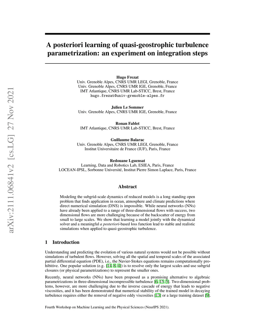 Modeling the subgrid-scale dynamics of reduced models is a long standing open problem that finds application in ocean, atmosphere and climate predictions where direct numerical simulation (DNS) is impossible. While neural networks (NNs) have already been applied to a range of three-dimensional flows with success, two dimensional flows are more challenging because of the backscatter of energy from small to large scales. We show that learning a model jointly with the dynamical solver and a meaningful \textit{a posteriori}-based loss function lead to stable and realistic simulations when applied to quasi-geostrophic turbulence.