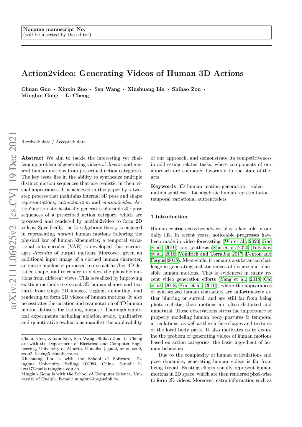 Action2video: Generating Videos of Human 3D Actions