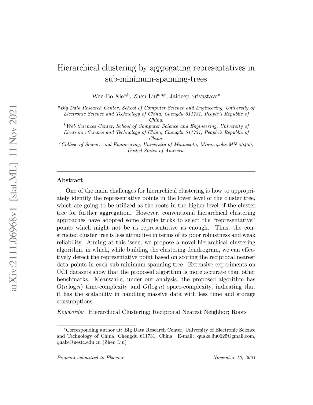 One of the main challenges for hierarchical clustering is how to appropriately identify the representative points in the lower level of the cluster tree, which are going to be utilized as the roots in the higher level of the cluster tree for further aggregation. However, conventional hierarchical clustering approaches have adopted some simple tricks to select the "representative" points which might not be as representative as enough. Thus, the constructed cluster tree is less attractive in terms of its poor robustness and weak reliability. Aiming at this issue, we propose a novel hierarchical clustering algorithm, in which, while building the clustering dendrogram, we can effectively detect the representative point based on scoring the reciprocal nearest data points in each sub-minimum-spanning-tree. Extensive experiments on UCI datasets show that the proposed algorithm is more accurate than other benchmarks. Meanwhile, under our analysis, the proposed algorithm has O(nlogn) time-complexity and O(logn) space-complexity, indicating that it has the scalability in handling massive data with less time and storage consumptions.