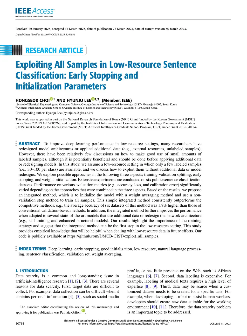 Exploiting all samples in low-resource sentence classification: early