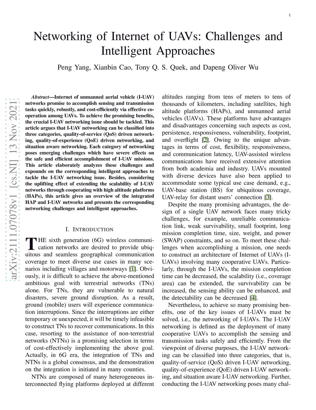 Networking of Internet of UAVs: Challenges and Intelligent Approaches