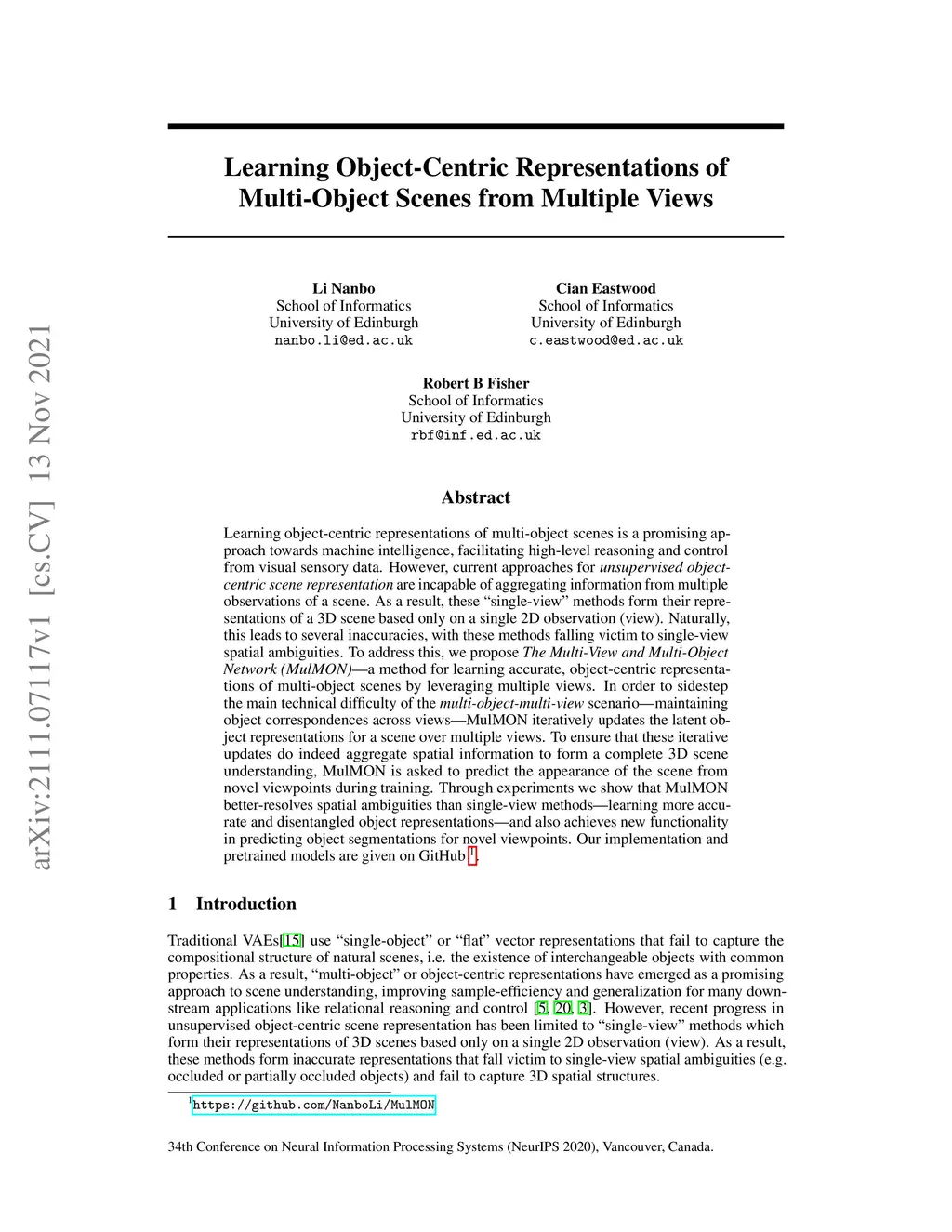 Learning Object-Centric Representations of Multi-Object Scenes from