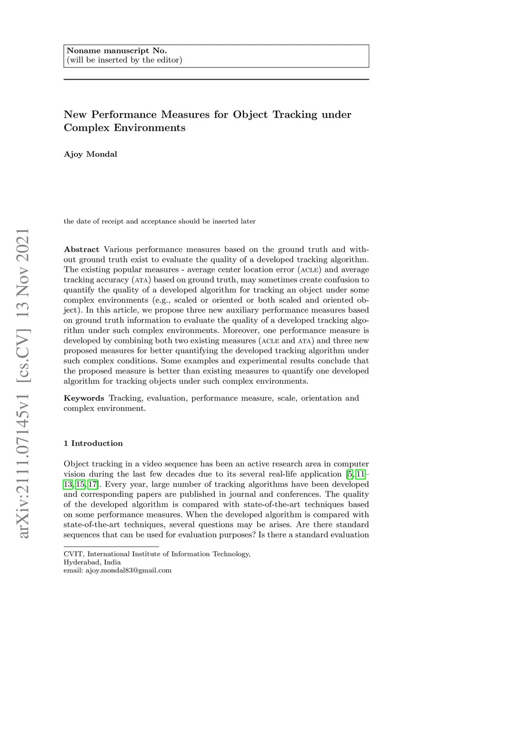 New Performance Measures for Object Tracking under Complex Environments