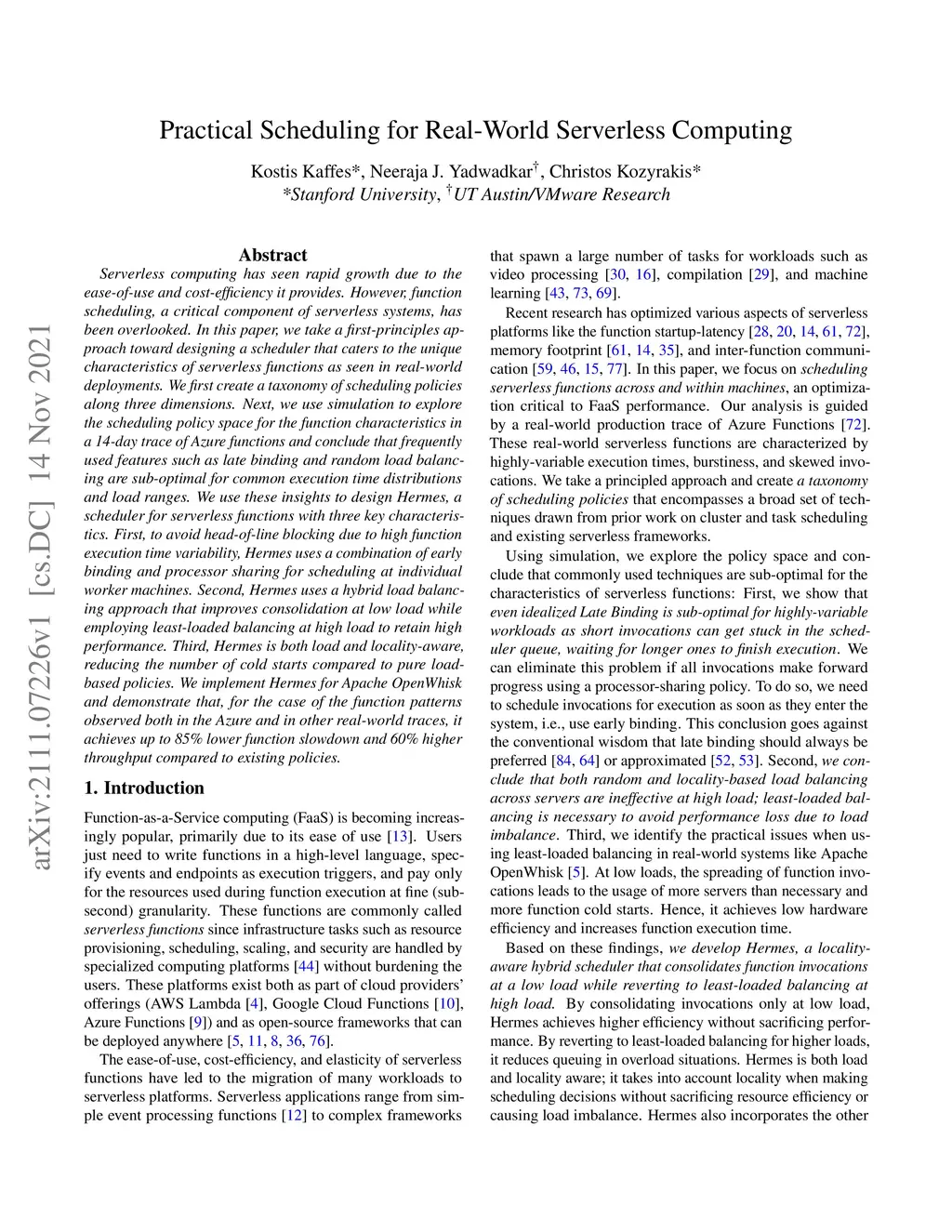 Practical Scheduling for Real-World Serverless Computing