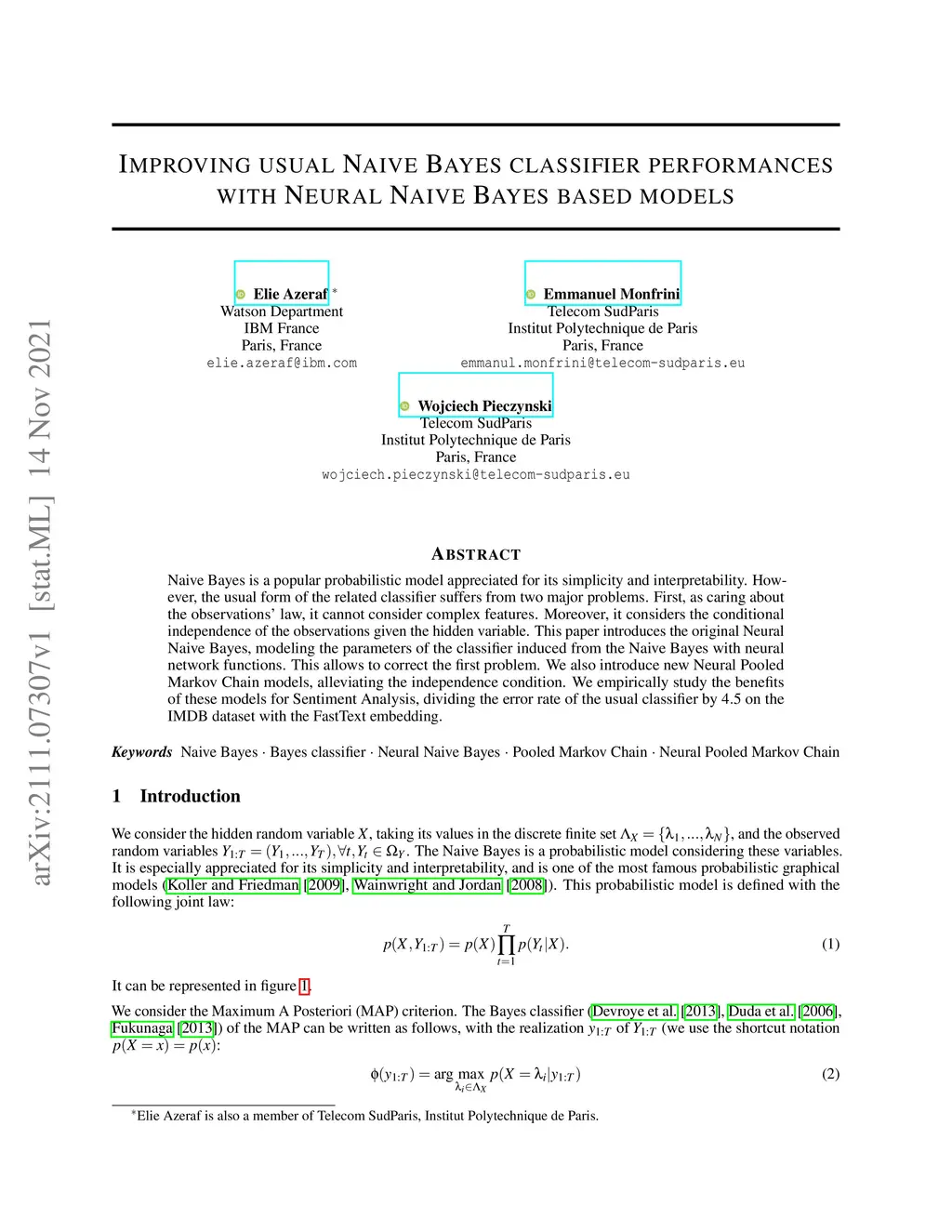 Improving usual Naive Bayes classifier performances with Neural Naive