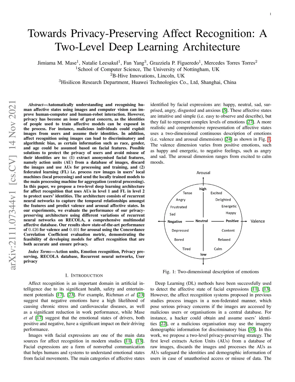 Towards Privacy-Preserving Affect Recognition: A Two-Level Deep Learning