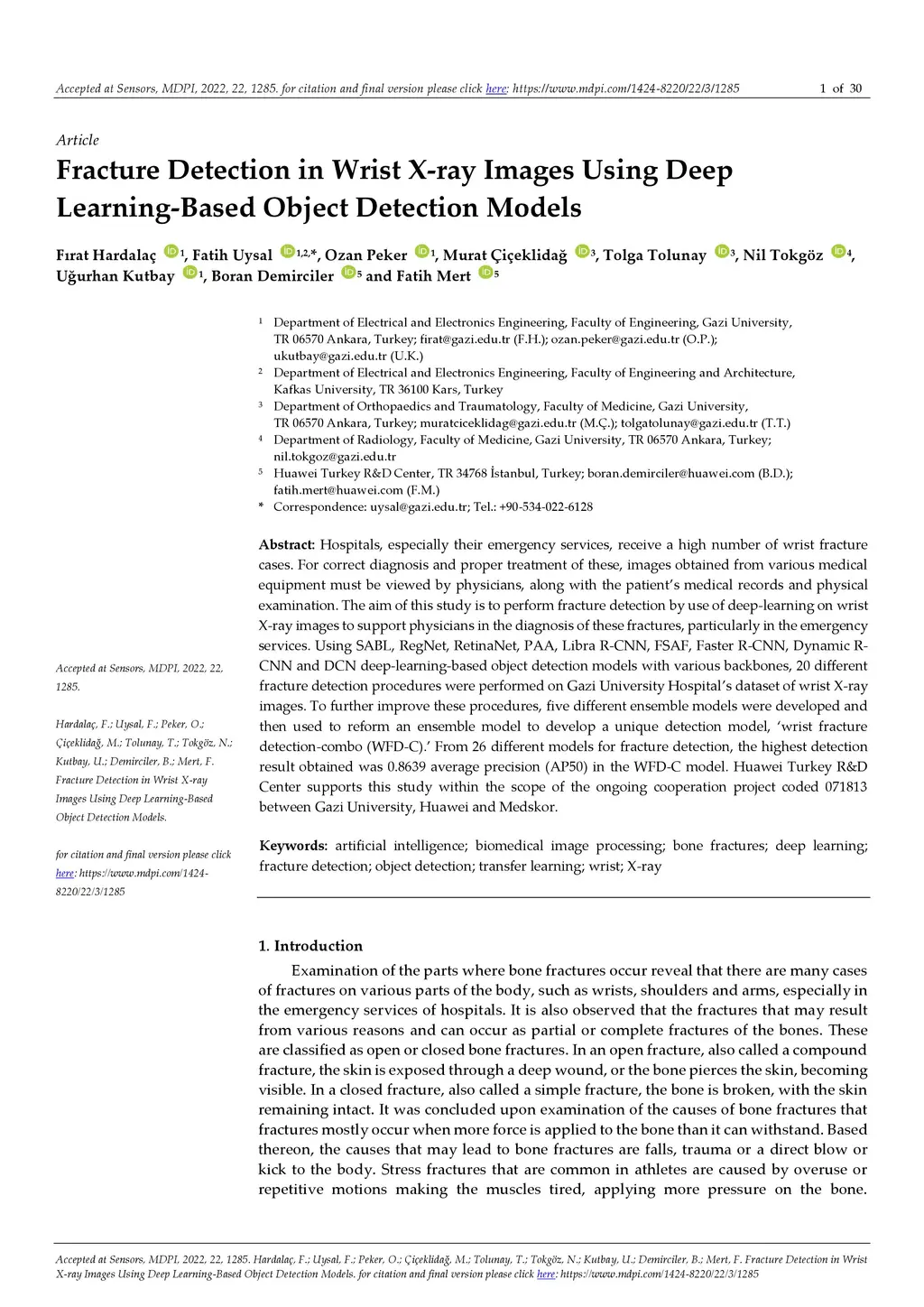 Hospitals, especially their emergency services, receive a high number of wrist fracture cases. For correct diagnosis and proper treatment of these, images obtained from various medical equipment must be viewed by physicians, along with the patients medical records and physical examination. The aim of this study is to perform fracture detection by use of deep learning on wrist Xray images to support physicians in the diagnosis of these fractures, particularly in the emergency services. Using SABL, RegNet, RetinaNet, PAA, Libra R_CNN, FSAF, Faster R_CNN, Dynamic R_CNN and DCN deep learning based object detection models with various backbones, 20 different fracture detection procedures were performed on Gazi University Hospitals dataset of wrist Xray images. To further improve these procedures, five different ensemble models were developed and then used to reform an ensemble model to develop a unique detection model, wrist fracture detection_combo (WFD_C). From 26 different models for fracture detection, the highest detection result obtained was 0.8639 average precision (AP50) in the WFD-C model. Huawei Turkey R&D Center supports this study within the scope of the ongoing cooperation project coded 071813 between Gazi University, Huawei and Medskor. Code is available at https://github.com/fatihuysal88/wrist-d
