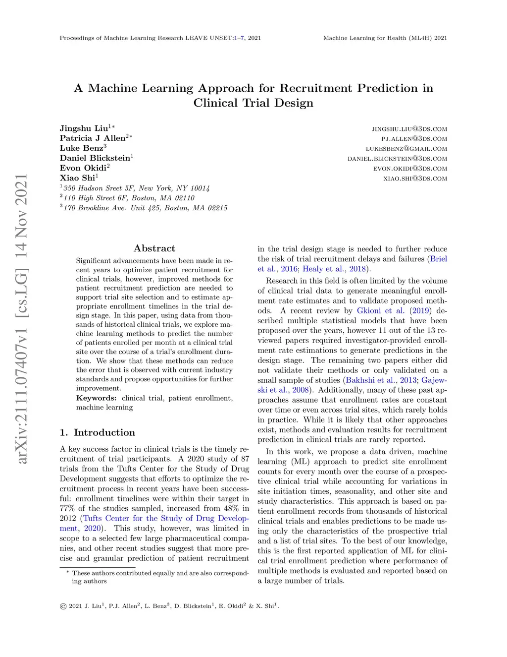 A Machine Learning Approach for Recruitment Prediction in Clinical Trial