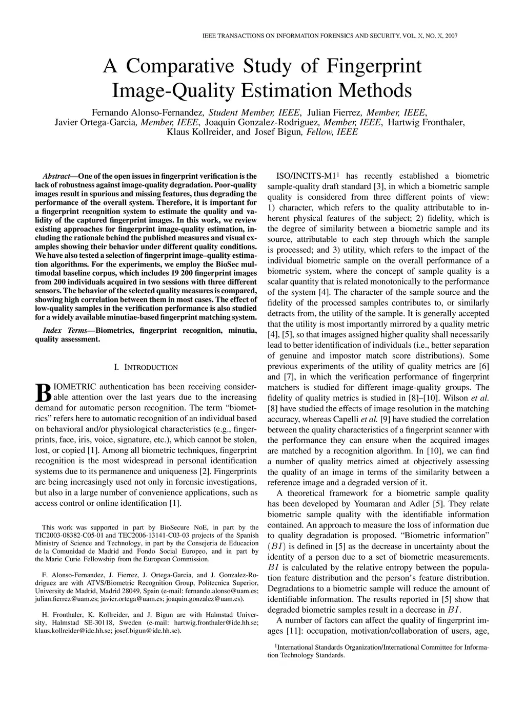 A Comparative Study of Fingerprint Image-Quality Estimation Methods