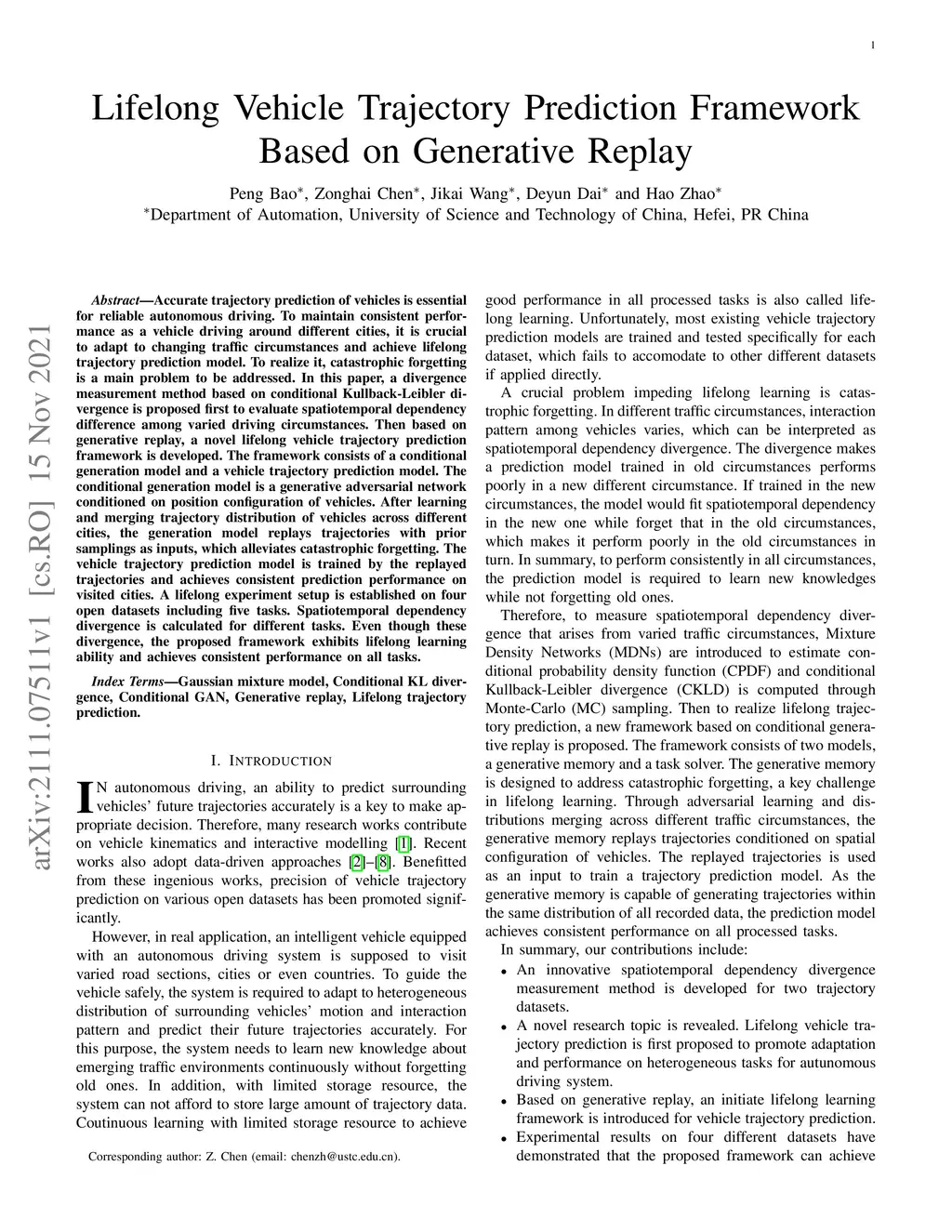 Lifelong Vehicle Trajectory Prediction Framework Based on Generative