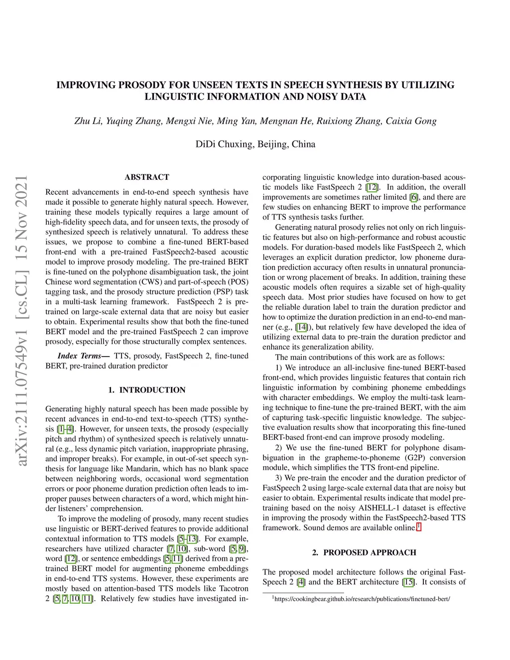 Recent advancements in end-to-end speech synthesis have made it possible to generate highly natural speech. However, training these models typically requires a large amount of high-fidelity speech data, and for unseen texts, the prosody of synthesized speech is relatively unnatural. To address these issues, we propose to combine a fine-tuned BERT-based front-end with a pre-trained FastSpeech2-based acoustic model to improve prosody modeling. The pre-trained BERT is fine-tuned on the polyphone disambiguation task, the joint Chinese word segmentation (CWS) and part-of-speech (POS) tagging task, and the prosody structure prediction (PSP) task in a multi-task learning framework. FastSpeech 2 is pre-trained on large-scale external data that are noisy but easier to obtain. Experimental results show that both the fine-tuned BERT model and the pre-trained FastSpeech 2 can improve prosody, especially for those structurally complex sentences.