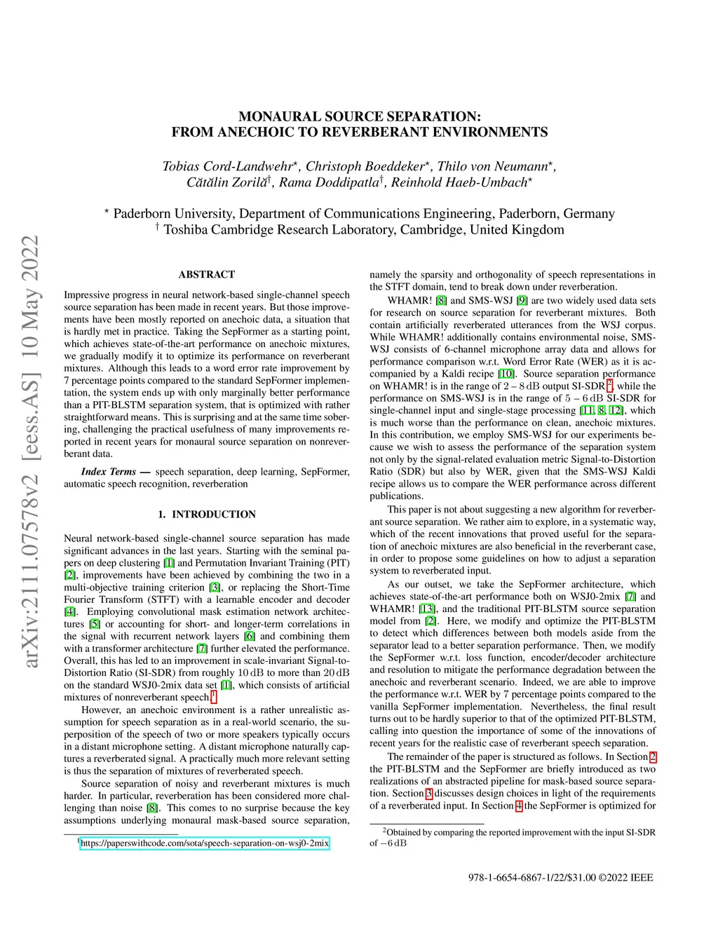 Monaural source separation: From anechoic to reverberant environments