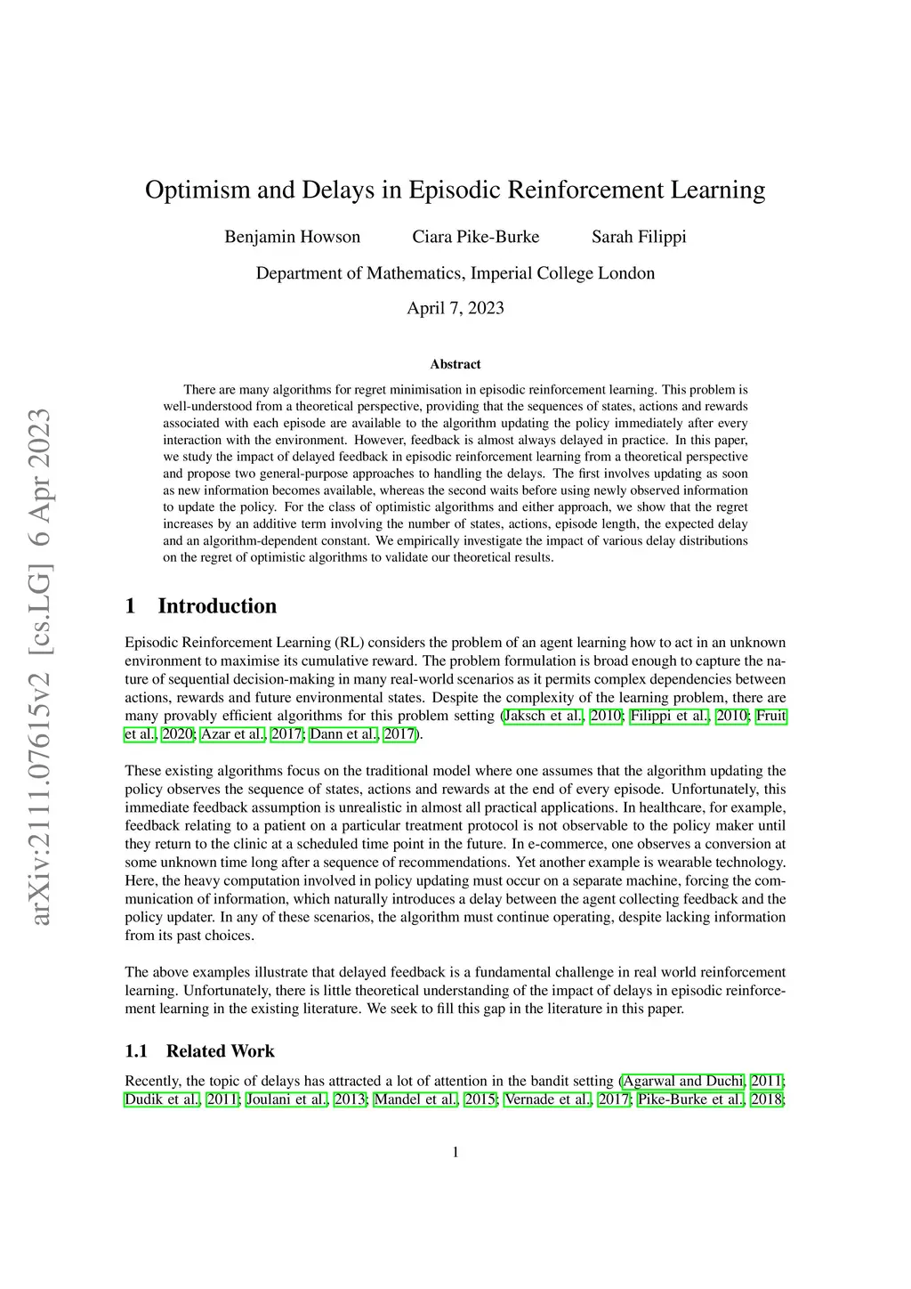 There are many algorithms for regret minimisation in episodic reinforcement learning. This problem is well-understood from a theoretical perspective, providing that the sequences of states, actions and rewards associated with each episode are available to the algorithm updating the policy immediately after every interaction with the environment. However, feedback is almost always delayed in practice. In this paper, we study the impact of delayed feedback in episodic reinforcement learning from a theoretical perspective and propose two general-purpose approaches to handling the delays. The first involves updating as soon as new information becomes available, whereas the second waits before using newly observed information to update the policy. For the class of optimistic algorithms and either approach, we show that the regret increases by an additive term involving the number of states, actions, episode length, the expected delay and an algorithm-dependent constant. We empirically investigate the impact of various delay distributions on the regret of optimistic algorithms to validate our theoretical results.