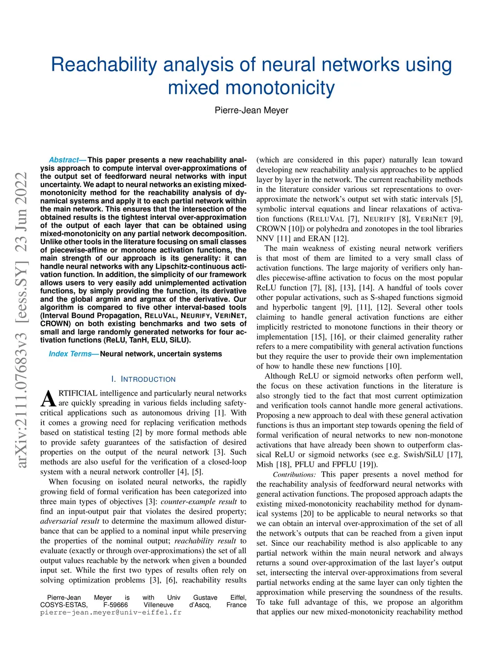 Reachability analysis of neural networks using mixed monotonicity