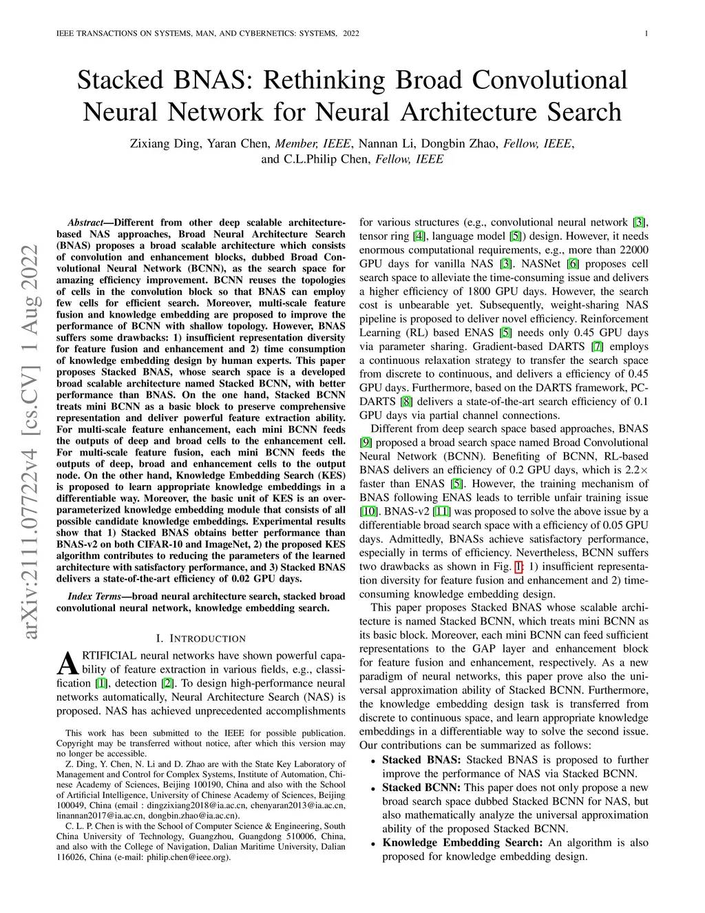 Stacked BNAS: Rethinking Broad Convolutional Neural Network for Neural