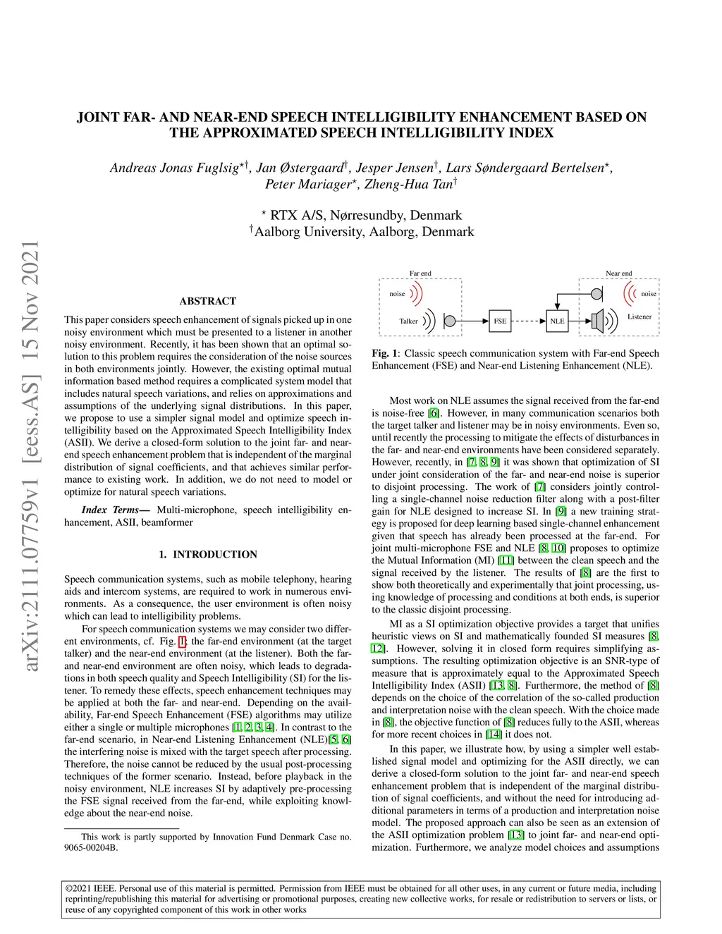 This paper considers speech enhancement of signals picked up in one noisy environment which must be presented to a listener in another noisy environment. Recently, it has been shown that an optimal solution to this problem requires the consideration of the noise sources in both environments jointly. However, the existing optimal mutual information based method requires a complicated system model that includes natural speech variations, and relies on approximations and assumptions of the underlying signal distributions. In this paper, we propose to use a simpler signal model and optimize speech intelligibility based on the Approximated Speech Intelligibility Index (ASII). We derive a closed-form solution to the joint far- and near-end speech enhancement problem that is independent of the marginal distribution of signal coefficients, and that achieves similar performance to existing work. In addition, we do not need to model or optimize for natural speech variations.