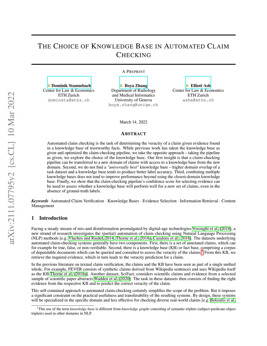 The Choice of Knowledge Base in Automated Claim Checking