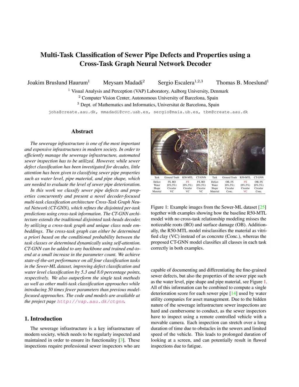 Multi-Task Classification of Sewer Pipe Defects and Properties using a
