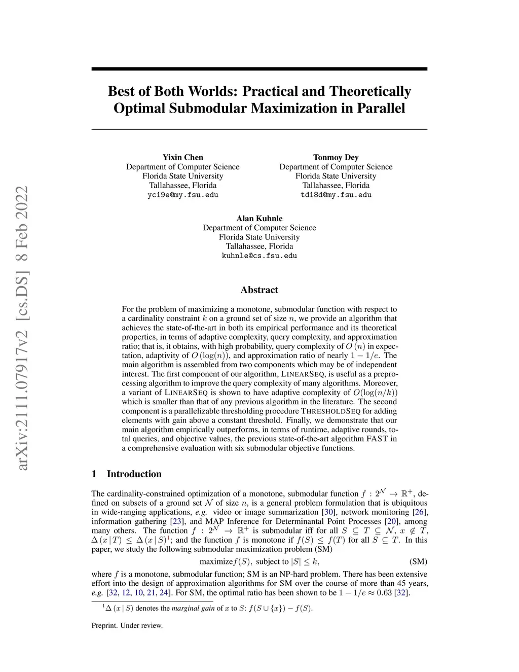 For the problem of maximizing a monotone, submodular function with respect to a cardinality constraint on a ground set of size , we provide an algorithm that achieves the state-of-the-art in both its empirical performance and its theoretical properties, in terms of adaptive complexity, query complexity, and approximation ratio; that is, it obtains, with high probability, query complexity of in expectation, adaptivity of , and approximation ratio of nearly . The main algorithm is assembled from two components which may be of independent interest. The first component of our algorithm, LINEARSEQ, is useful as a preprocessing algorithm to improve the query complexity of many algorithms. Moreover, a variant of LINEARSEQ is shown to have adaptive complexity of which is smaller than that of any previous algorithm in the literature. The second component is a parallelizable thresholding procedure THRESHOLDSEQ for adding elements with gain above a constant threshold. Finally, we demonstrate that our main algorithm empirically outperforms, in terms of runtime, adaptive rounds, total queries, and objective values, the previous state-of-the-art algorithm FAST in a comprehensive evaluation with six submodular objective functions.