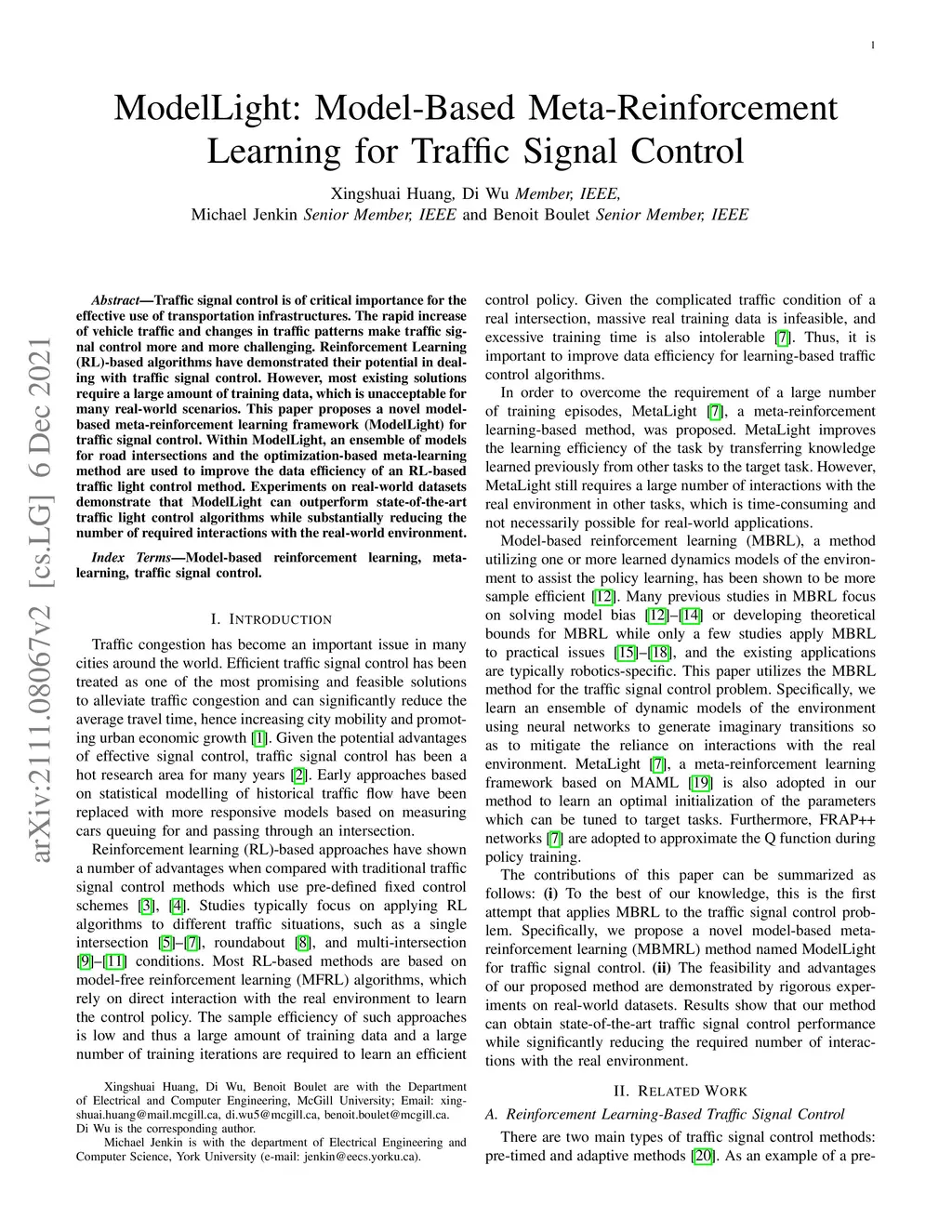 ModelLight: Model-Based Meta-Reinforcement Learning for Traffic Signal