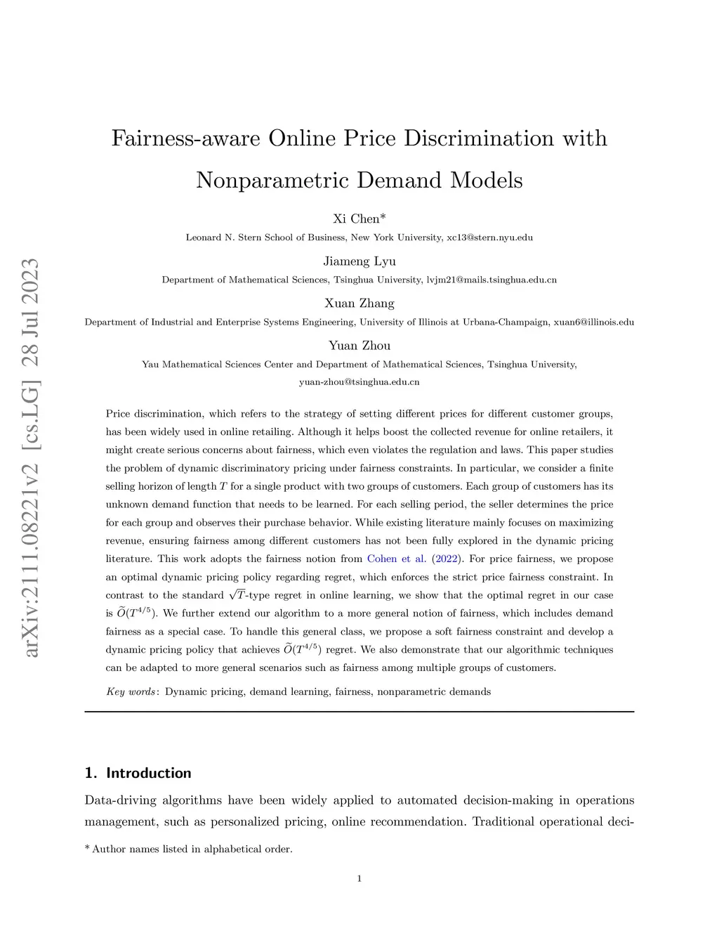 Fairness-aware Online Price Discrimination with Nonparametric Demand