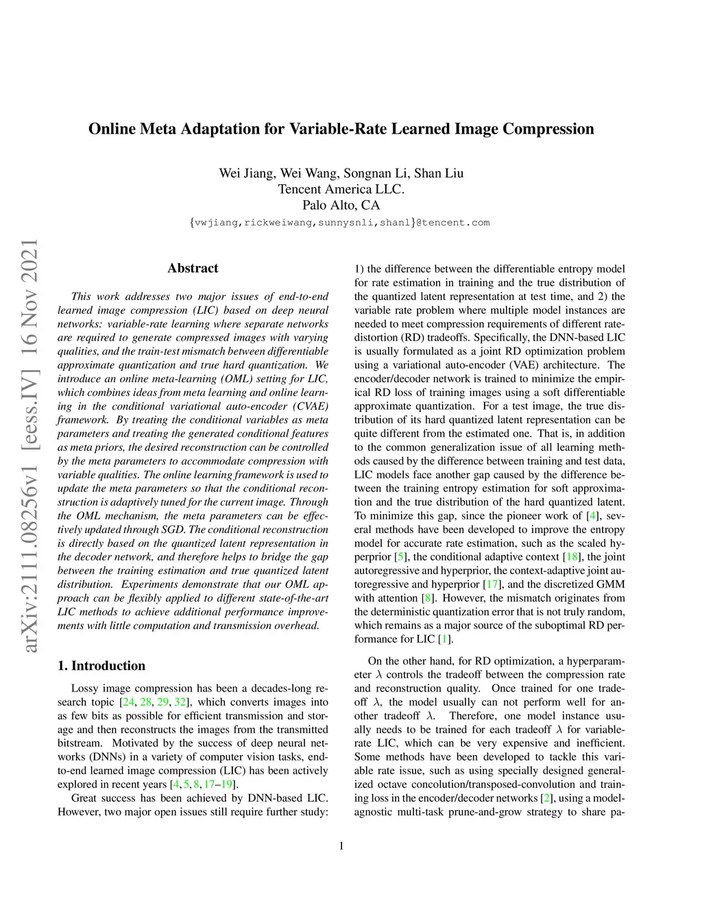 This work addresses two major issues of end-to-end learned image compression (LIC) based on deep neural networks: variable-rate learning where separate networks are required to generate compressed images with varying qualities, and the train-test mismatch between differentiable approximate quantization and true hard quantization. We introduce an online meta-learning (OML) setting for LIC, which combines ideas from meta learning and online learning in the conditional variational auto-encoder (CVAE) framework. By treating the conditional variables as meta parameters and treating the generated conditional features as meta priors, the desired reconstruction can be controlled by the meta parameters to accommodate compression with variable qualities. The online learning framework is used to update the meta parameters so that the conditional reconstruction is adaptively tuned for the current image. Through the OML mechanism, the meta parameters can be effectively updated through SGD. The conditional reconstruction is directly based on the quantized latent representation in the decoder network, and therefore helps to bridge the gap between the training estimation and true quantized latent distribution. Experiments demonstrate that our OML approach can be flexibly applied to different state-of-the-art LIC methods to achieve additional performance improvements with little computation and transmission overhead.