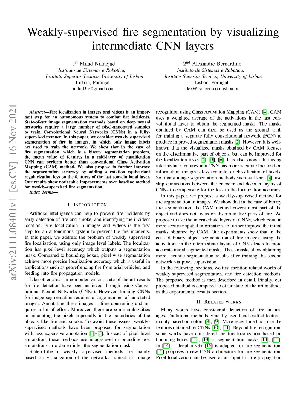 Weakly-supervised fire segmentation by visualizing intermediate CNN