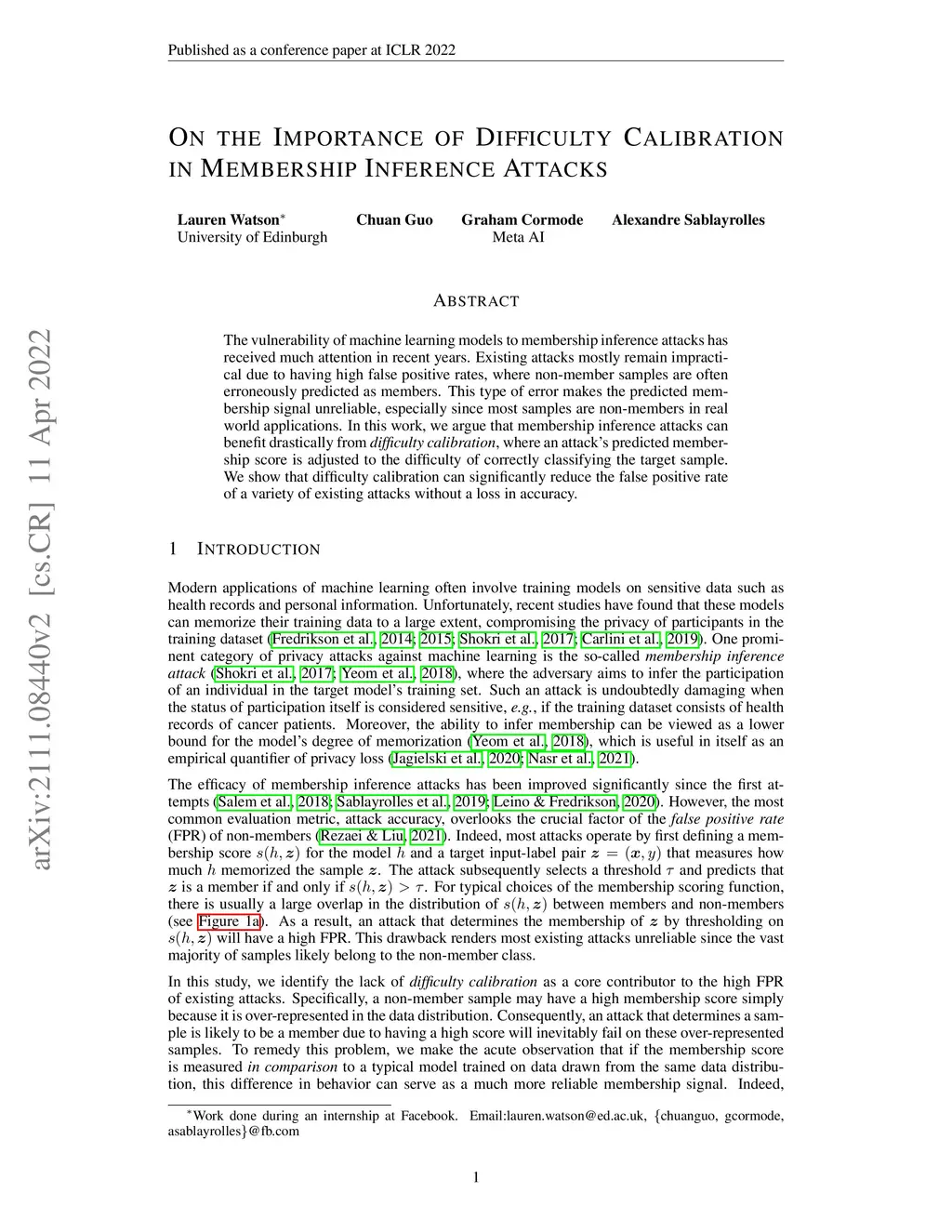 The vulnerability of machine learning models to membership inference attacks has received much attention in recent years. However, existing attacks mostly remain impractical due to having high false positive rates, where non-member samples are often erroneously predicted as members. This type of error makes the predicted membership signal unreliable, especially since most samples are non-members in real world applications. In this work, we argue that membership inference attacks can benefit drastically from \emph{difficulty calibration}, where an attack's predicted membership score is adjusted to the difficulty of correctly classifying the target sample. We show that difficulty calibration can significantly reduce the false positive rate of a variety of existing attacks without a loss in accuracy.