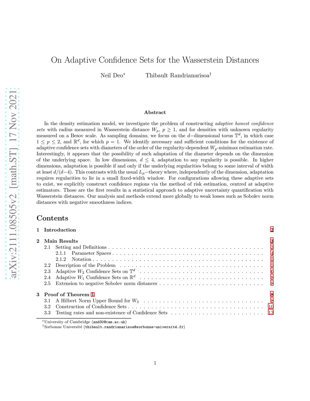 In the density estimation model, we investigate the problem of constructing adaptive honest confidence sets with radius measured in Wasserstein distance , , and for densities with unknown regularity measured on a Besov scale. As sampling domains, we focus on the dimensional torus , in which case , and , for which . We identify necessary and sufficient conditions for the existence of adaptive confidence sets with diameters of the order of the regularity-dependent -minimax estimation rate. Interestingly, it appears that the possibility of such adaptation of the diameter depends on the dimension of the underlying space. In low dimensions, , adaptation to any regularity is possible. In higher dimensions, adaptation is possible if and only if the underlying regularities belong to some interval of width at least . This contrasts with the usual theory where, independently of the dimension, adaptation requires regularities to lie in a small fixed-width window. For configurations allowing these adaptive sets to exist, we explicitly construct confidence regions via the method of risk estimation, centred at adaptive estimators. Those are the first results in a statistical approach to adaptive uncertainty quantification with Wasserstein distances. Our analysis and methods extend more globally to weak losses such as Sobolev norm distances with negative smoothness indices.
