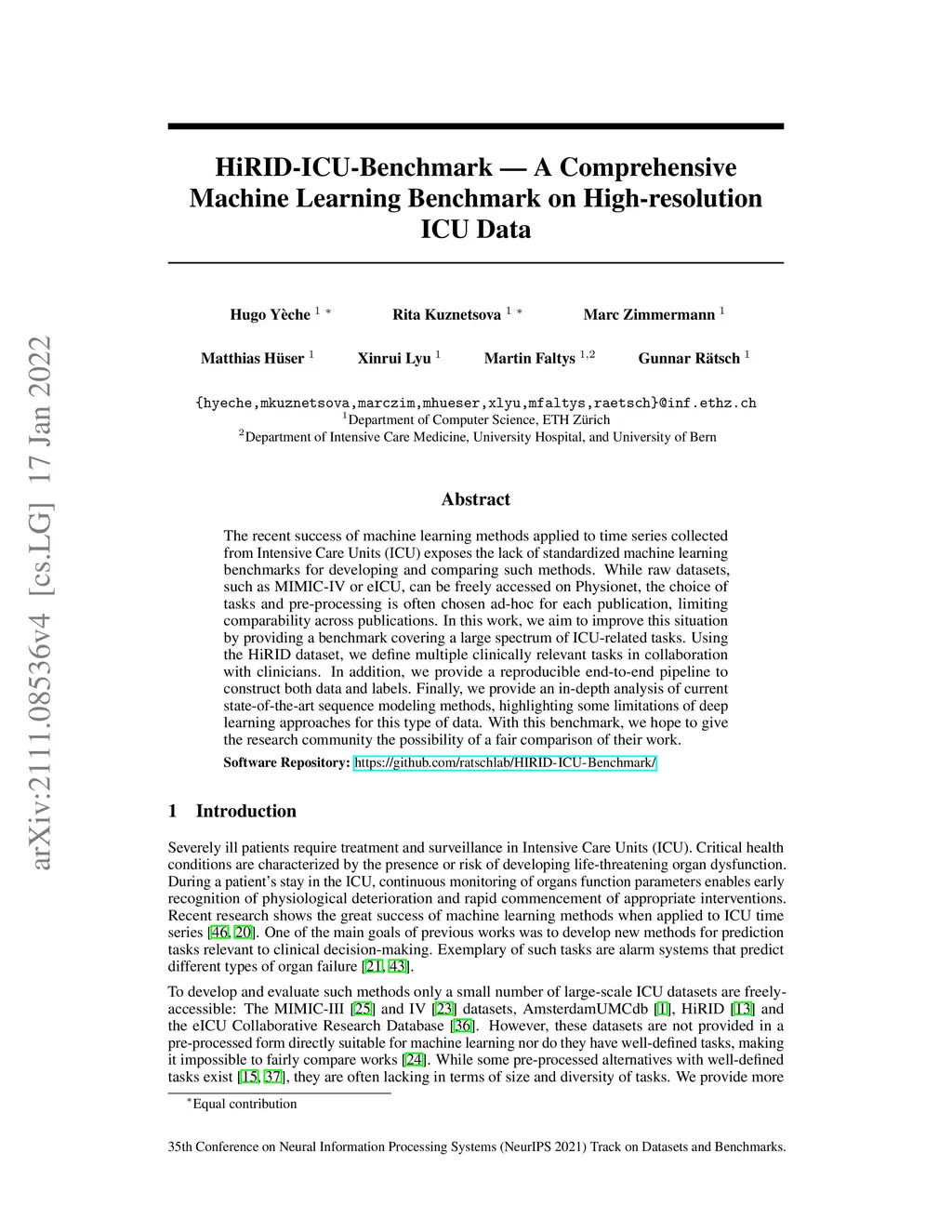 HiRID-ICU-Benchmark -- A Comprehensive Machine Learning Benchmark on