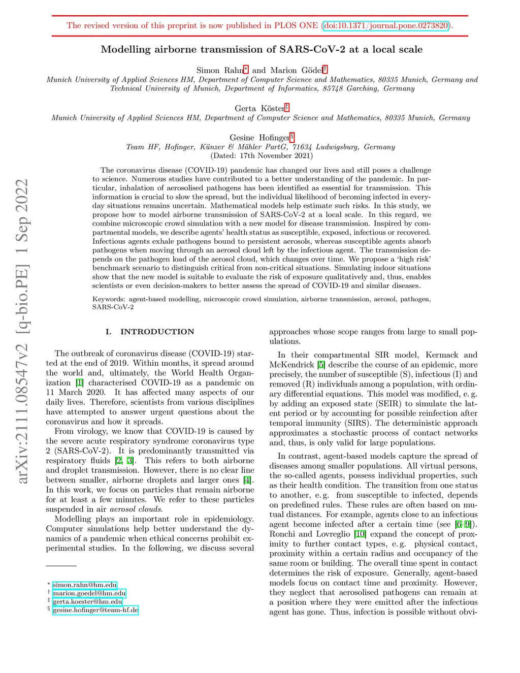 Modelling airborne transmission of SARS-CoV-2 at a local scale