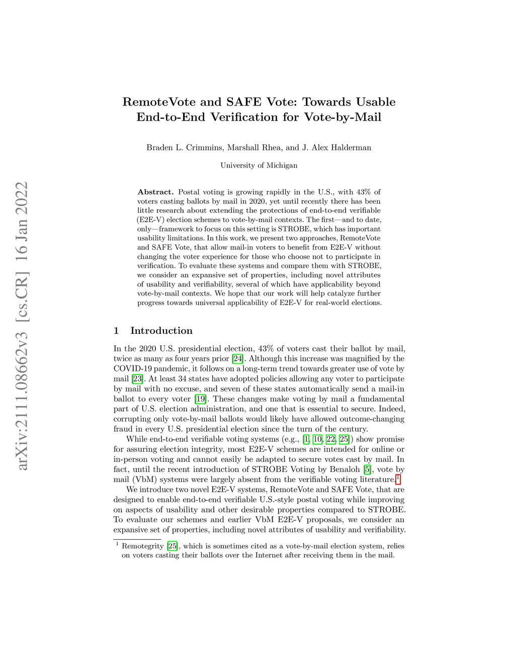 RemoteVote and SAFE Vote: Towards Usable End-to-End Verification for