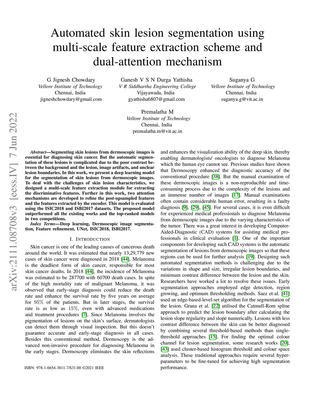 Automated skin lesion segmentation using multi-scale feature extraction