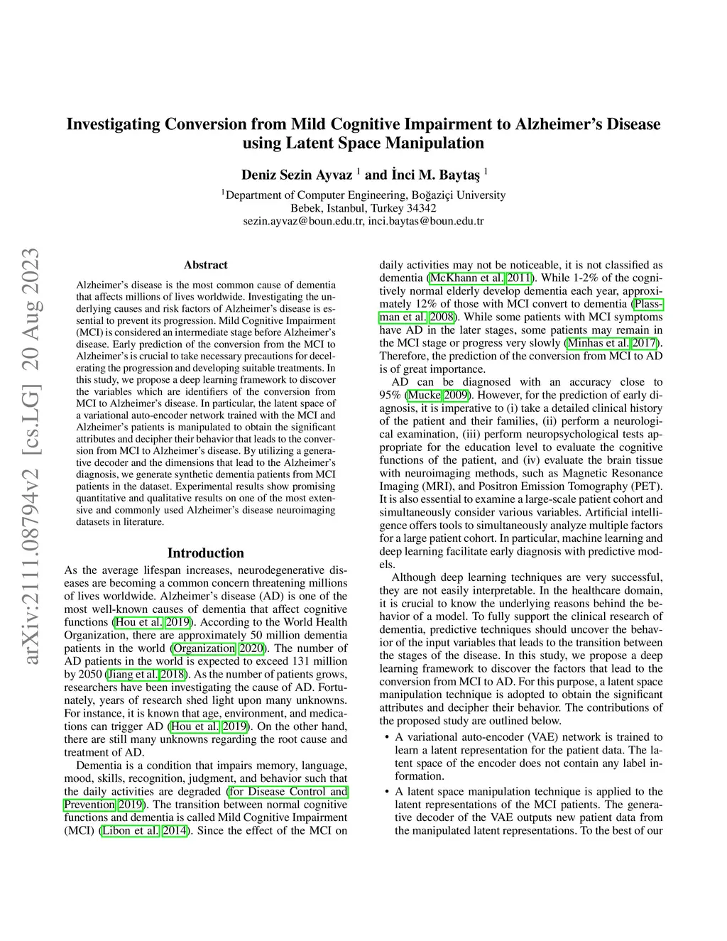 Alzheimer's disease is the most common cause of dementia that affects millions of lives worldwide. Investigating the underlying causes and risk factors of Alzheimer's disease is essential to prevent its progression. Mild Cognitive Impairment (MCI) is considered an intermediate stage before Alzheimer's disease. Early prediction of the conversion from the MCI to Alzheimer's is crucial to take necessary precautions for decelerating the progression and developing suitable treatments. In this study, we propose a deep learning framework to discover the variables which are identifiers of the conversion from MCI to Alzheimer's disease. In particular, the latent space of a variational auto-encoder network trained with the MCI and Alzheimer's patients is manipulated to obtain the significant attributes and decipher their behavior that leads to the conversion from MCI to Alzheimer's disease. By utilizing a generative decoder and the dimensions that lead to the Alzheimer's diagnosis, we generate synthetic dementia patients from MCI patients in the dataset. Experimental results show promising quantitative and qualitative results on one of the most extensive and commonly used Alzheimer's disease neuroimaging datasets in literature.