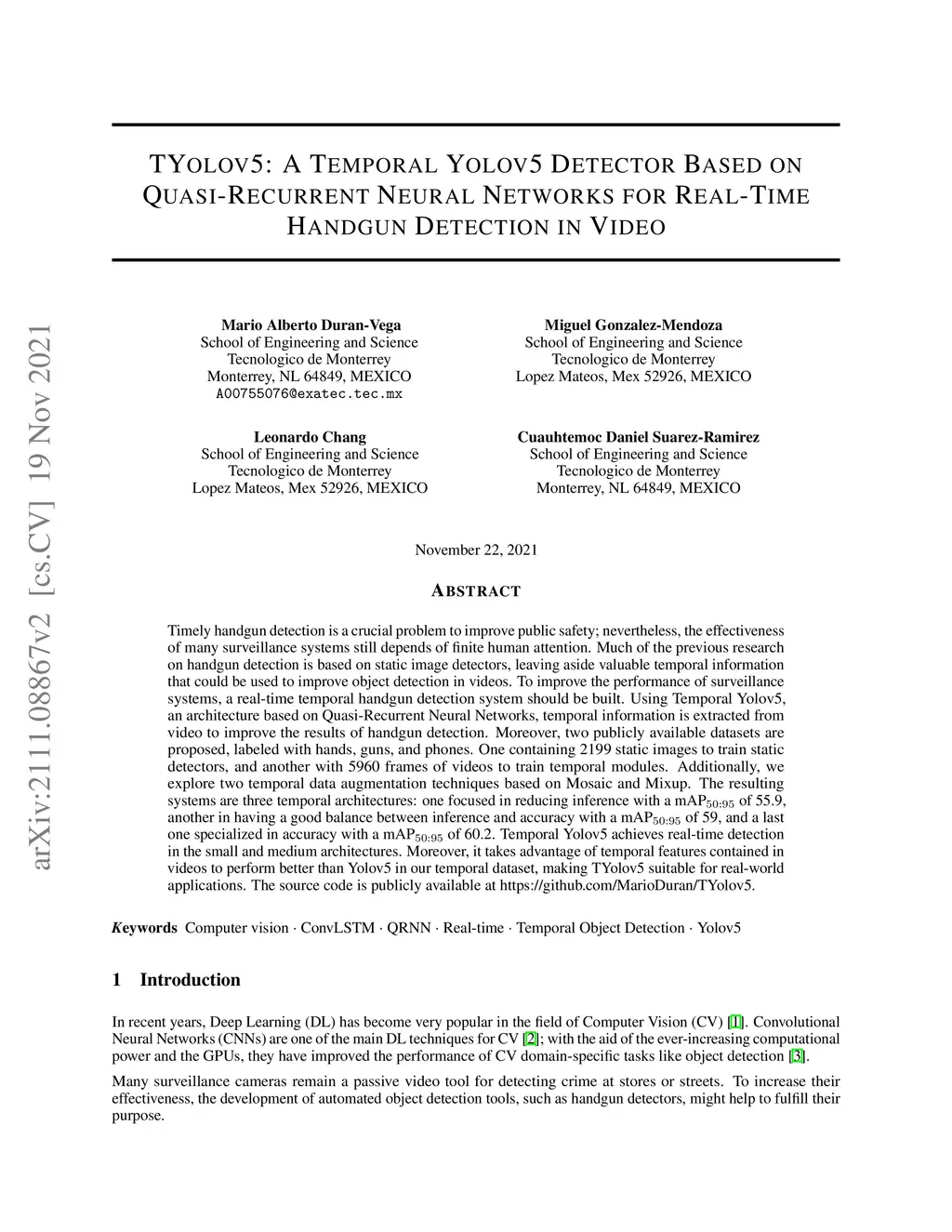 TYolov5: A Temporal Yolov5 Detector Based on Quasi-Recurrent Neural