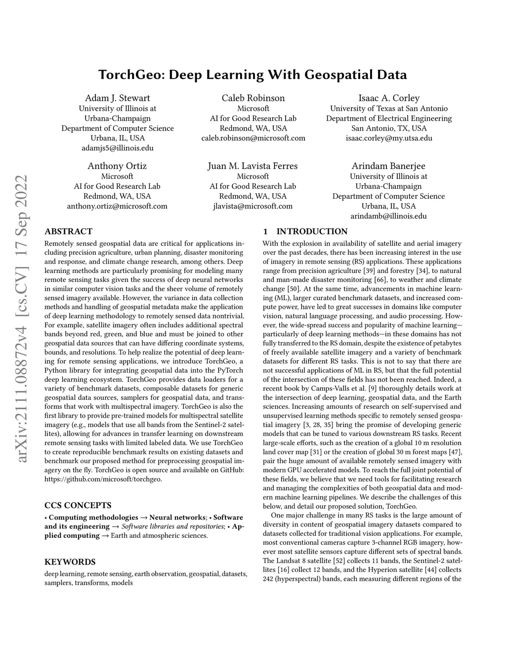 TorchGeo: Deep Learning With Geospatial Data