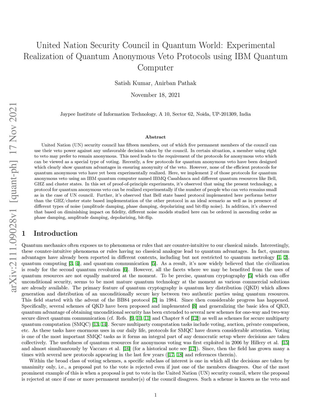 United Nation Security Council in Quantum World: Experimental