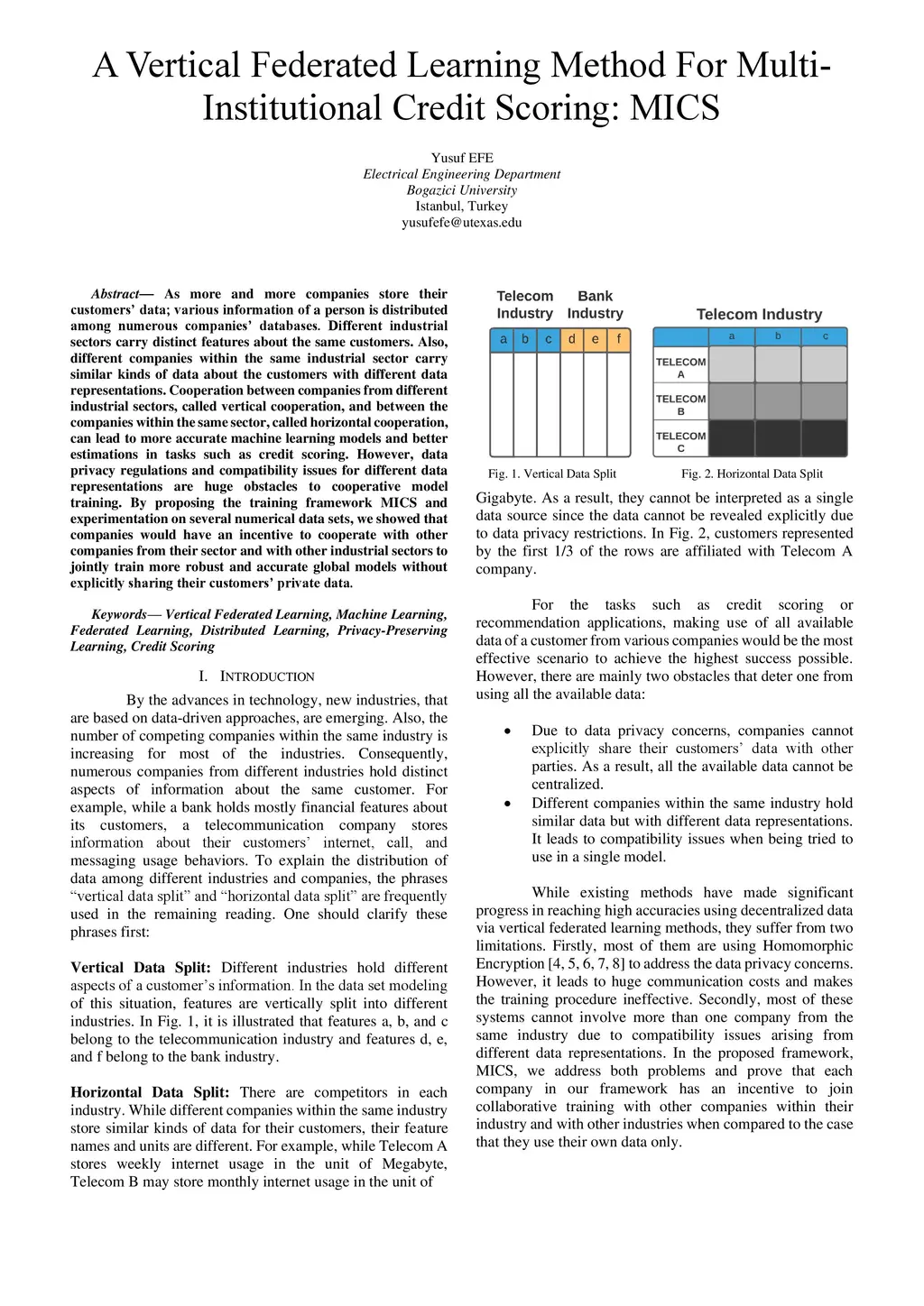 As more and more companies store their customers' data; various information of a person is distributed among numerous companies' databases. Different industrial sectors carry distinct features about the same customers. Also, different companies within the same industrial sector carry similar kinds of data about the customers with different data representations. Cooperation between companies from different industrial sectors, called vertical cooperation, and between the companies within the same sector, called horizontal cooperation, can lead to more accurate machine learning models and better estimations in tasks such as credit scoring. However, data privacy regulations and compatibility issues for different data representations are huge obstacles to cooperative model training. By proposing the training framework MICS and experimentation on several numerical data sets, we showed that companies would have an incentive to cooperate with other companies from their sector and with other industrial sectors to jointly train more robust and accurate global models without explicitly sharing their customers' private data.