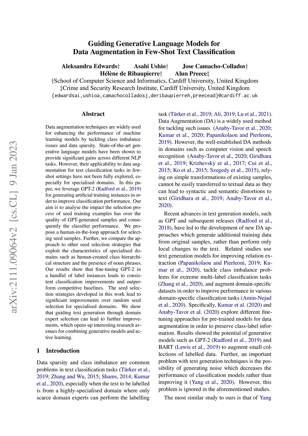 Data augmentation techniques are widely used for enhancing the performance of machine learning models by tackling class imbalance issues and data sparsity. State-of-the-art generative language models have been shown to provide significant gains across different NLP tasks. However, their applicability to data augmentation for text classification tasks in few-shot settings have not been fully explored, especially for specialised domains. In this paper, we leverage GPT-2 (Radford A et al, 2019) for generating artificial training instances in order to improve classification performance. Our aim is to analyse the impact the selection process of seed training examples have over the quality of GPT-generated samples and consequently the classifier performance. We perform experiments with several seed selection strategies that, among others, exploit class hierarchical structures and domain expert selection. Our results show that fine-tuning GPT-2 in a handful of label instances leads to consistent classification improvements and outperform competitive baselines. Finally, we show that guiding this process through domain expert selection can lead to further improvements, which opens up interesting research avenues for combining generative models and active learning.