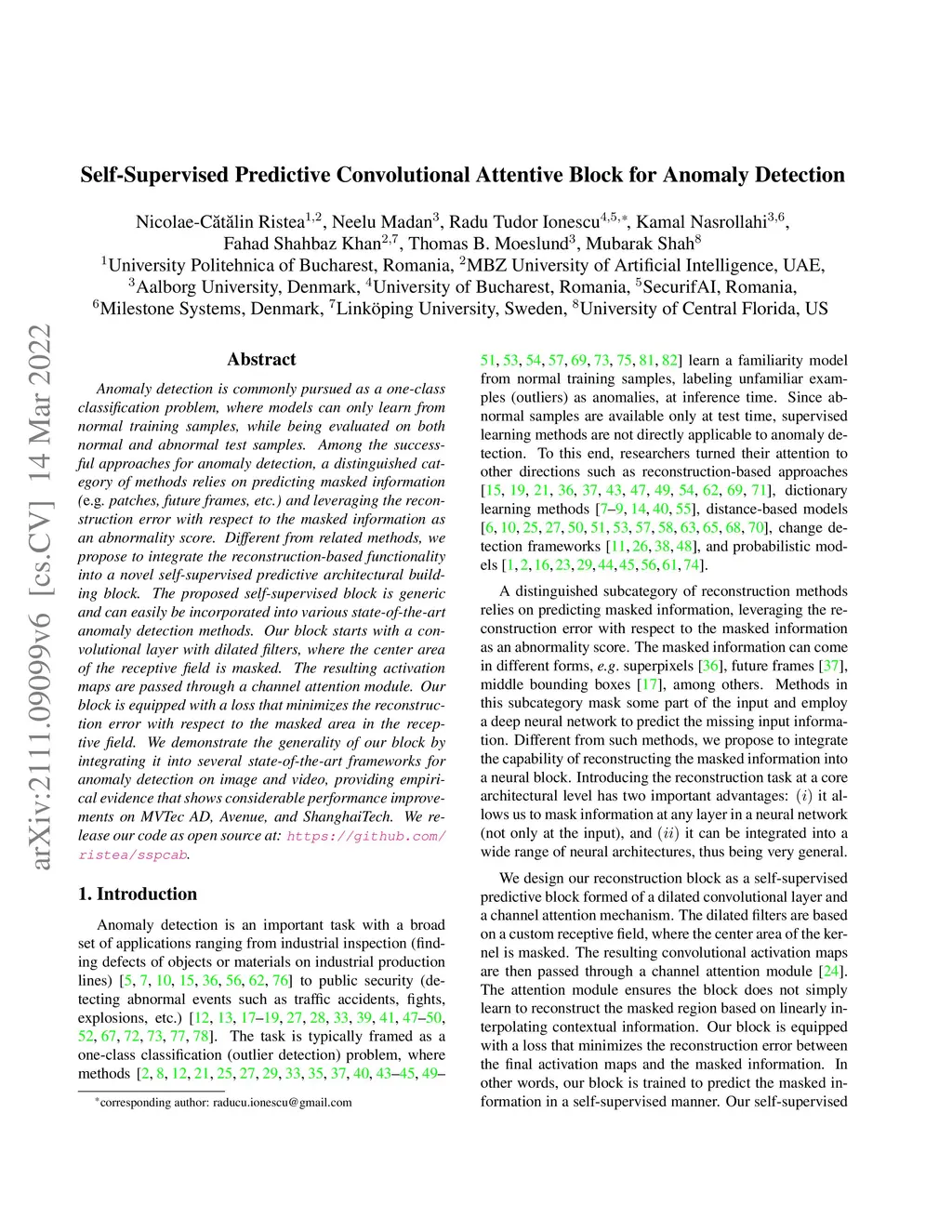 Self-Supervised Predictive Convolutional Attentive Block for Anomaly Detection