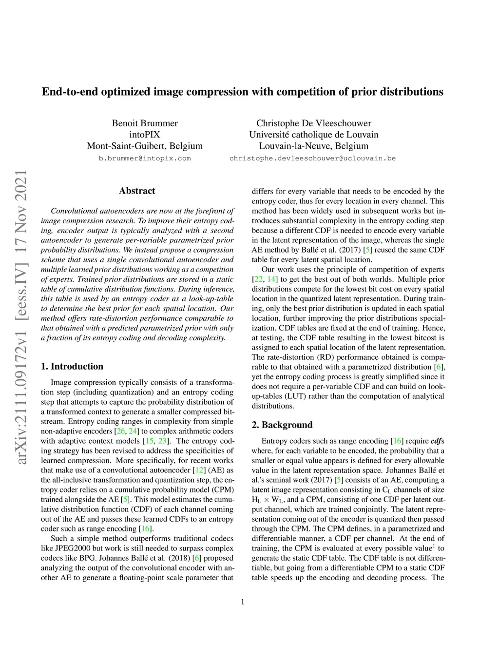 End-to-end optimized image compression with competition of prior