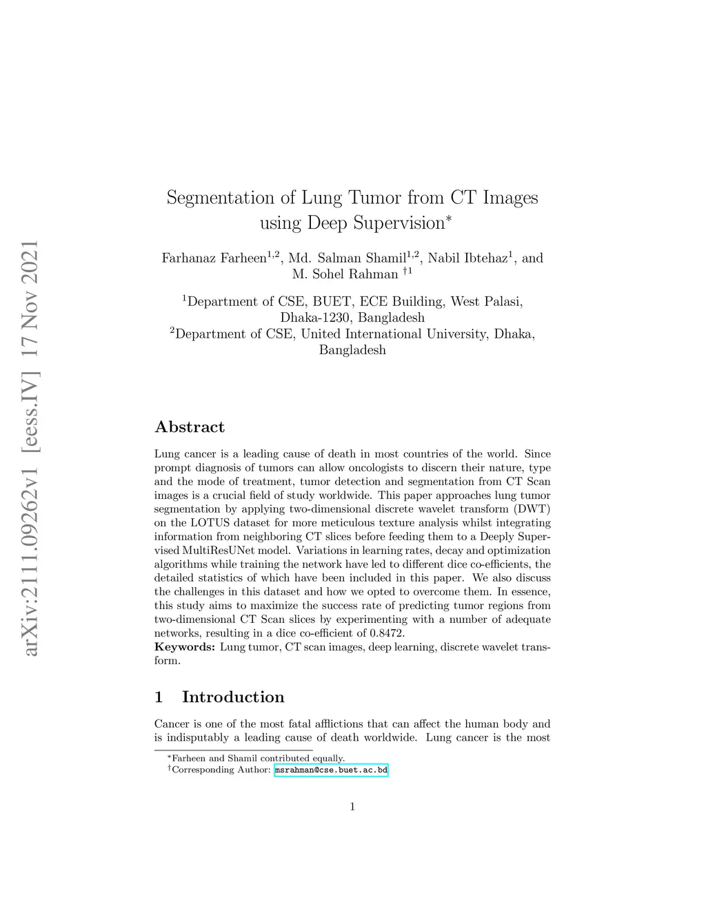 Segmentation of Lung Tumor from CT Images using Deep Supervision
