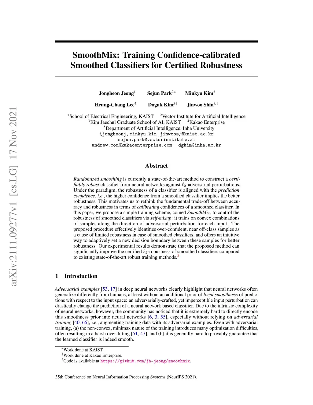 SmoothMix: Training Confidence-calibrated Smoothed Classifiers for
